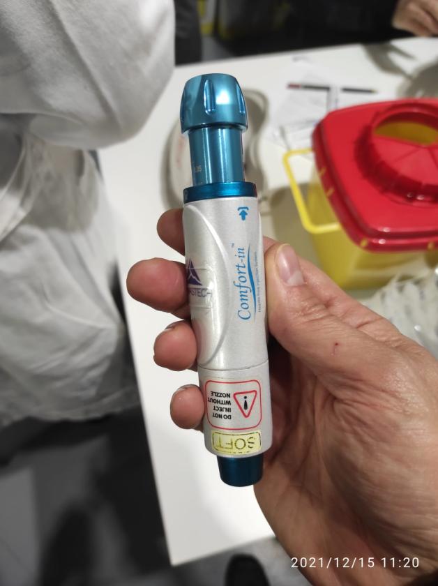 "La 'siringa senz'ago' - spiega il dottor Chinellato - permette di iniettare il vaccino antiCovid utilizzando una tecnologia che sfrutta la velocità. con cui il vaccino viene somministrato; e inietta il vaccino alla stessa profondità di quanto fa una siringa standard, attraverso un foro minuscolo, molto più piccolo rispetto a quello, pur piccolo, creato dalle siringhe fin qui utilizzate".