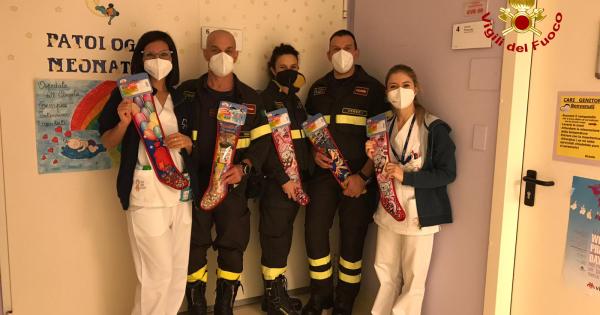 VENEZIA - Una bellissima visita, tra le più attese per i piccoli ricoverati in pediatria nell'Ospedale dell'Angelo a Mestre: quella della Befana. Una befana, però, con la divisa da pompiere, una iniziativa nata anni fa in collaborazione tra i Vigili del fuoco e la realtà ospedaliera locale che è stata ripresa dopo lo stop dello scorso anno per l’emergenza Covid. Quest’anno tre vigili del fuoco si sono recati dai rappresentati di pediatria e pronto soccorso, lasciando per i piccoli degenti le calze piene di dolciumi donate da un ipermercato. Le calze piene di doni sono state consegnate in sicurezza ai bambini dal personale sanitario dei diversi reparti.