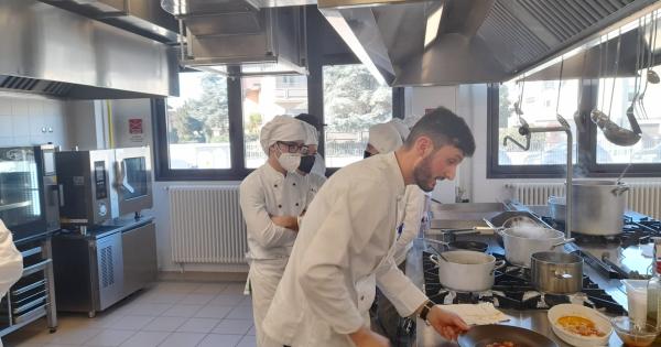 Ai fornelli Andrea Pensotti, del ristorante M400 di Sottomarina per gli allievi del "San Donà"