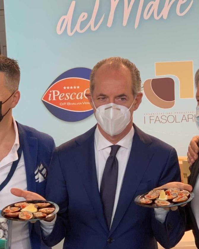 CHIOGGIA - Alla Fiera dell'Alto Adriatico, che si concluderà domani 6 aprile a Caorle, protagonisti anche la O. P. I Fasolari di Chioggia e i IPescaOri di Caorle, in uno stand che è stato molto apprezzato anche dal governatore Luca Zaia.