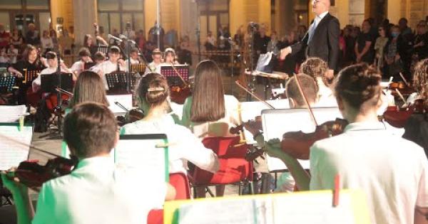 Un colpo d’occhio magnifico: piazza gremita di genitori e parenti. Presenti i sindaci di Cavarzere e Cona e numerosi amministratori. Un’orchestra imponente, esecuzioni magistrali. A condurre la serata Maria Ilva Bonato ed Enzo Salmaso. Ad aprire il concerto il maestro Renzo Banzato, fondatore del Corso e oggi docente al Conservatorio di Adria. Poi con Antonio Brazzo, con l’esecuzione dell’Inno Nazionale accompagnato dal coro dei ragazzi della 1^F, e subito dopo, un fuori programma con le note dell’Inno dell’Ucraina, cantato da tre ragazzini di quel paese, che oggi frequentano l’Istituto Comprensivo di Cavarzere.