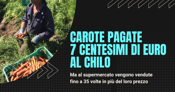 E a confermarlo è anche Mauro Mantovan della Confederazione Italiana Agricoltori con un lungo post sul suo profilo Facebook: “I produttori se la sono cavata quest’anno con il radicchio, ma la stanno pagando cara con le carote vendute a 7 centesimi al chilo. E qualcuno non le fresa nemmeno perché farebbe male al terreno. Fare un ettaro a carote costa circa 5mila euro se non di più. A 7 centesimi servono ben 50mila chili per avvicinarsi al costo di produzione. All’agricoltore 7 centesimi al chilo, ma al consumatore vengono fatte pagare un euro al chilo e fino a 2,25 euro al chilo se in foglia. Dalle 14, alle 35 volte in più. Può essere normale tutto questo? In pratica gli agricoltori lavorano gratis”. E Mantovan punta il dito su un sistema che deve assolutamente essere cambiato: “Il consumatore paga quasi come fosse in gioielleria, non credo sia giusto che si continui con queste scelleratezze. Serve metterci mano affinché chi lavora abbia quanto meno pagato il suo tempo, almeno quello”.