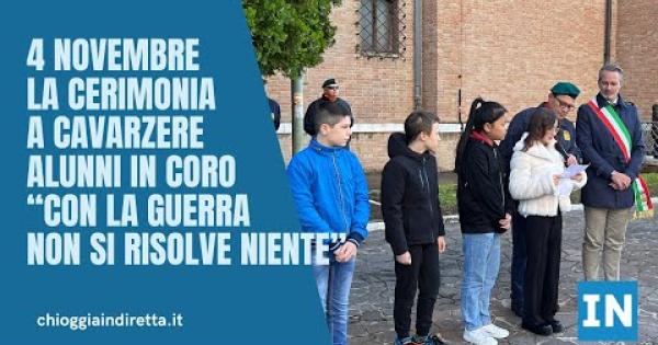 CAVARZERE - “Con la guerra non si risolve niente, ma si rovina la vita alla gente”. E’ il pensiero finale, limpido e incontestabile, che gli alunni della scuola media “Cappon” hanno letto durante la commemorazione del 4 Novembre, 105esimo anniversario dalla fine della Prima guerra mondiale e la festa nazionale delle forze armate, oltre al ricordo dei Caduti di tutte le guerre. Adele, An Qi, Erik e Christian, alunne e alunni della 1F a indirizzo musicale, hanno letto un breve discorso che ha preceduto quello istituzionale del sindaco di Cavarzere, Pierfrancesco Munari.