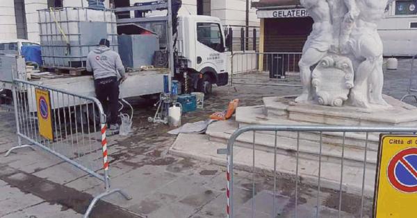 CHIOGGIA - Dopo la colonna di Vigo tocca allo Stendardo: lavori in corso per la sistemazione dei paletti di protezione del monumento da poco restaurato. Anche qui gli operai sono al lavoro per posizionare dei paletti con catenella simili a quelli che si trovano davanti alla chiesa di San Giacomo, a protezione dei gradini.