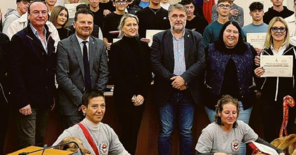 Il sindaco con alcuni dei bagnini premiati nel 2024