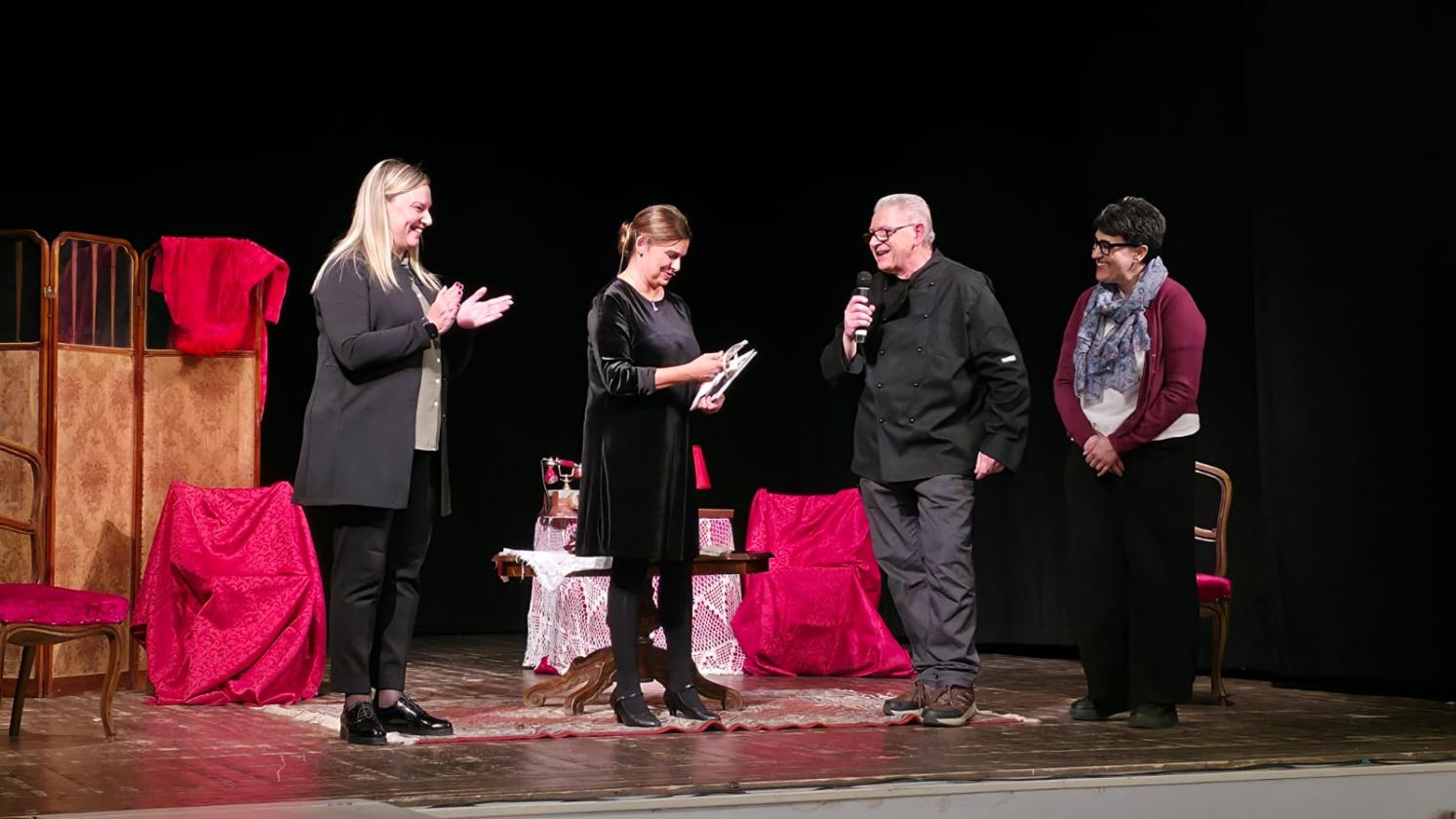 A fine spettacolo, la presidente del circolo Tullio Serafin, Nicla Sguotti, ha ringraziato Debora Caprioglio per la sua intensa interpretazione e le ha donato il volume “La divina e il maestro”, scritto da lei stessa e arricchito dalle illustrazioni di Piero Sandano, che ripercorre la storica collaborazione tra Serafin e la Callas dal 1947 agli anni Sessanta.