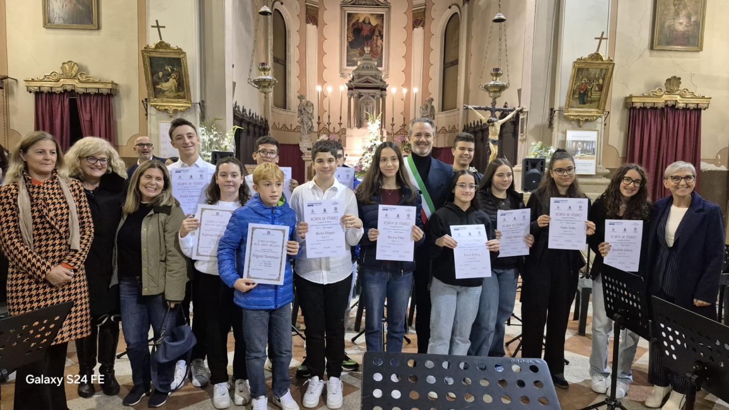 CAVARZERE - La chiesa Di Rottanova ha fatto da cornice alla cerimonia organizzata dall’istituto comprensivo di Cavarzere e Cona per la consegna delle borse di studio ai propri alunni, diplomatisi a fine giugno. Ai piedi dell’altare è stata sistemata l’orchestra giovanile dello stesso istituto. Nella chiesa gremita in particolare da genitori e parenti dei premiati e dei ragazzi impegnati in orchestra, si sono rivolti per un saluto la dirigente scolastica, Ilaria Finotti, il sindaco dei ragazzi, Cloe Diletta Gradara della classe 3^F, e il sindaco di Cavarzere, Pierfrancesco Munari.