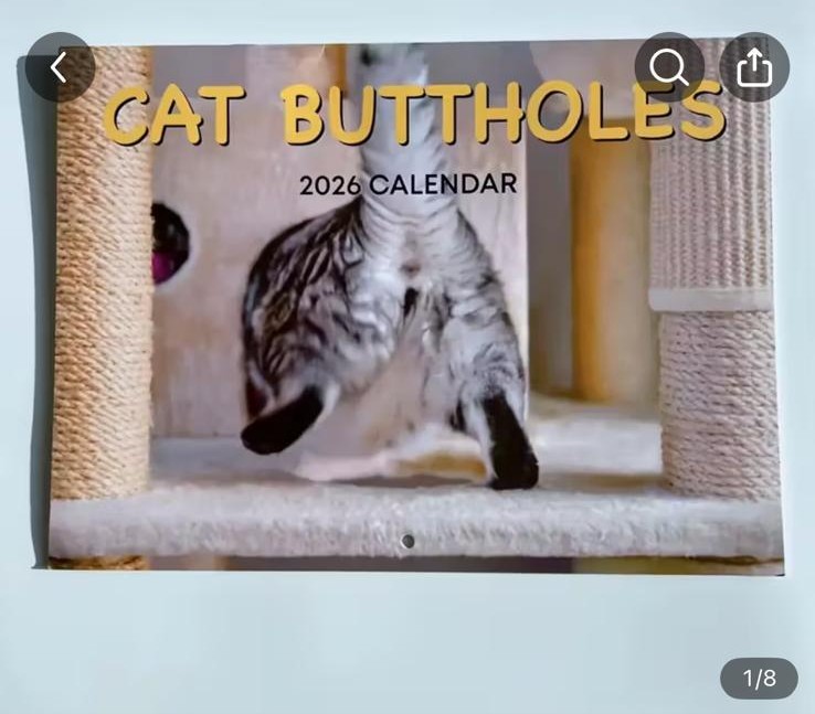 Di discutibile raffinatezza anche il calendario dei sederi dei gatti, un oggetto che sembra nato per testare i limiti della sopportazione visiva. Dodici mesi di primi piani felini che nessuno aveva mai chiesto, ma che qualcuno, inspiegabilmente, ha deciso di produrre.