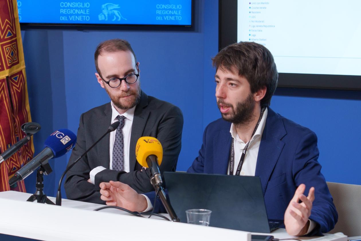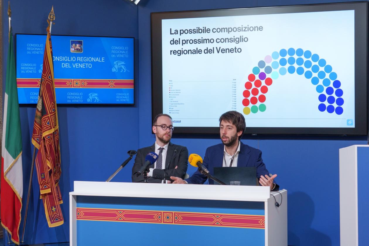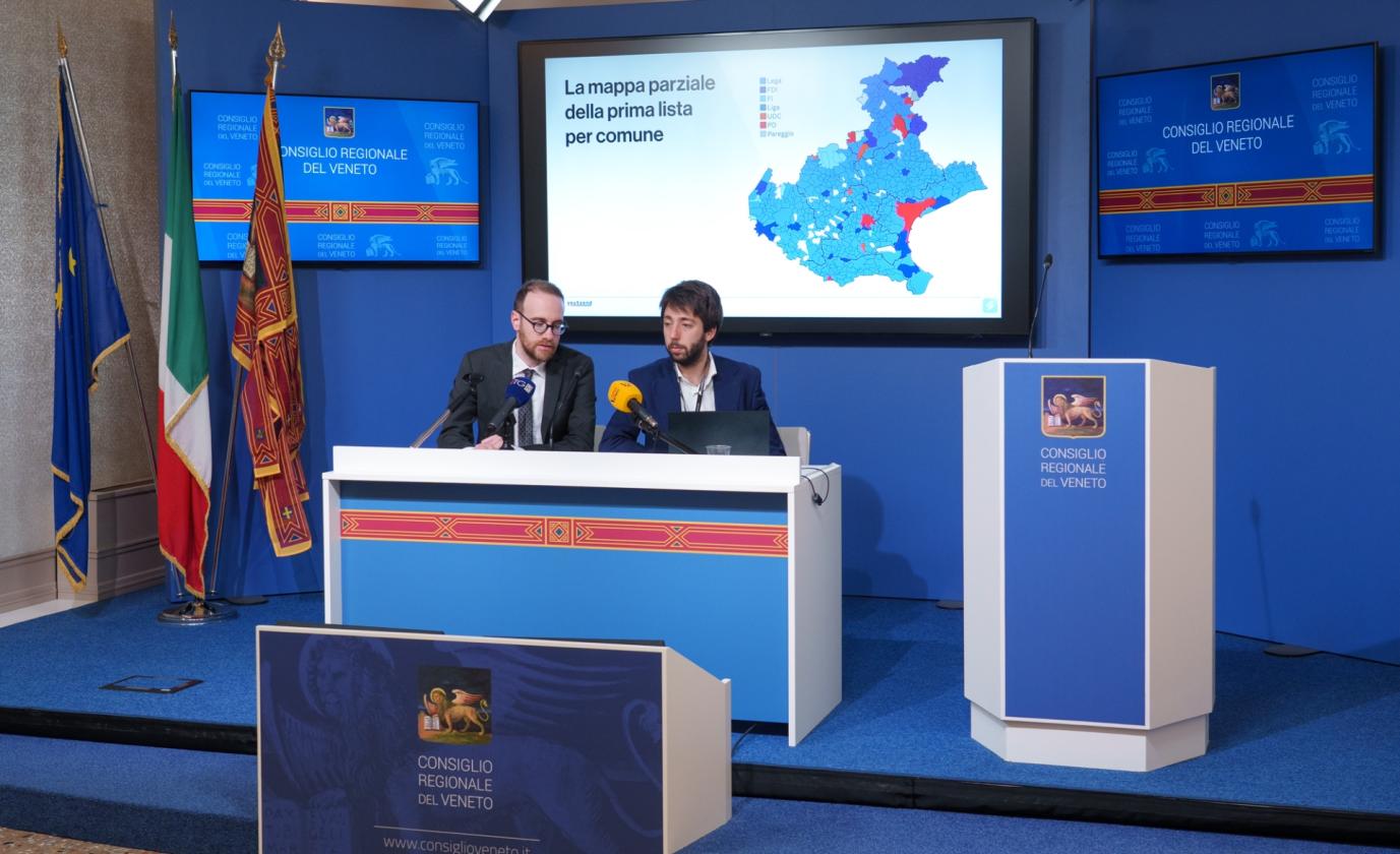 La ripartizione provvisoria dei seggi riflette un assetto sostanzialmente proporzionale, poiché la coalizione vincente supera il 60% e non scatta dunque il premio di maggioranza. I dati, con l’86% delle sezioni acquisite, indicano: 19 seggi alla lista Lega – Liga Veneto – Stefani Presidente; 9 al Partito Democratico – Manildo Presidente; 9 a Fratelli d’Italia; 3 a Forza Italia – Autonomia per il Veneto; 2 a Szumski Resistere Veneto; 2 ad Alleanza Verdi e Sinistra; 1 a Uniti per Manildo; 1 al Movimento 5 Stelle; 1 all’Unione di Centro; 1 a Liga Veneta Repubblica; 1 alle Civiche Venete per Manildo. Il centro-destra, che nella legislatura uscente contava 41 seggi, dovrebbe ora attestarsi tra 32 e 36, mentre le opposizioni aumentano significativamente la propria rappresentanza.