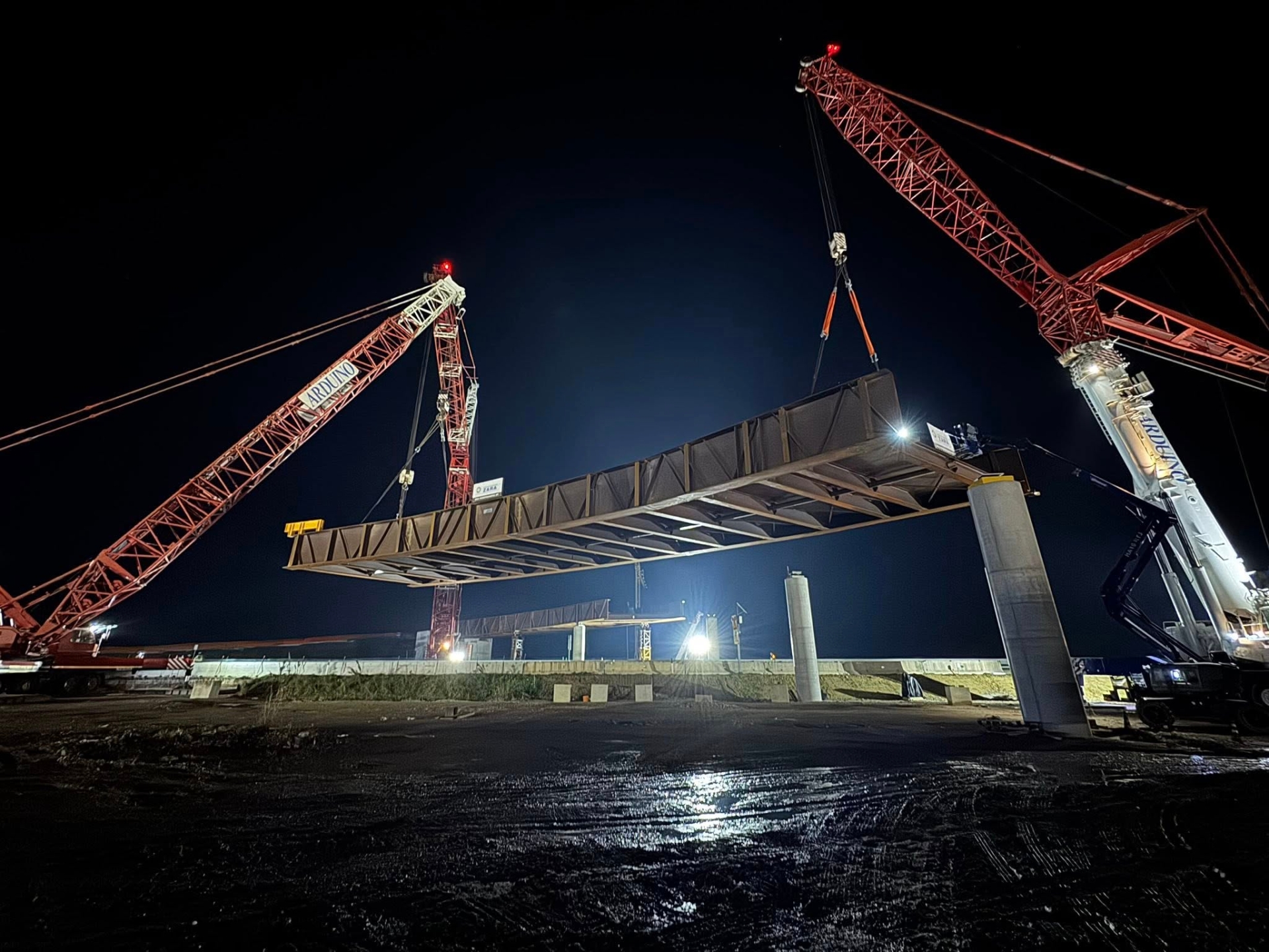 VENEZIA - Venezia. Si è conclusa nella notte tra venerdì 28 e sabato 29 novembre un’operazione cruciale per il completamento della nuova viabilità Tessera–Aeroporto: il varo del blocco centrale del viadotto di collegamento al Bosco dello Sport, nella zona del raccordo autostradale verso l’aeroporto “Marco Polo”. L’intervento, articolato in tre fasi – sollevamento del concio, trasferimento tra le gru e posizionamento definitivo sui pilastri – ha richiesto la collaborazione di una ventina di operai specializzati e l’impiego di tre autogrù di grande portata.