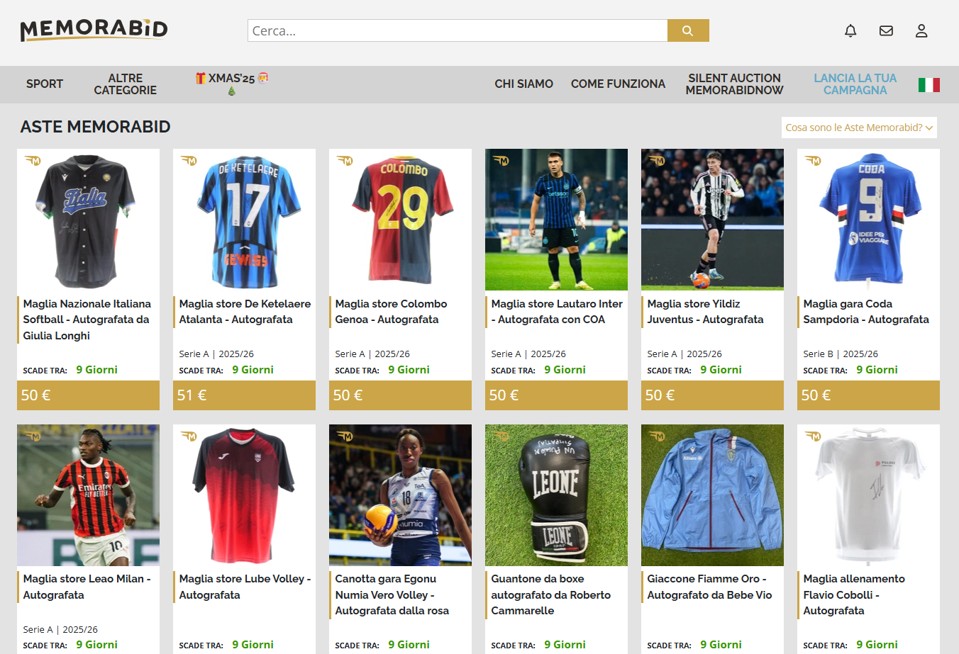 La copertina dell’asta è dedicata alle stelle della Serie A: sono disponibili le maglie ufficiali autografate da Lautaro Martinez (Inter), Leao (Milan), Yildiz (Juventus) e De Ketelaere (Atalanta). Presenti anche quelle del derby della Lanterna con le maglie di Lorenzo Colombo (Genoa) e Massimo Coda (Sampdoria), oltre alla divisa della Pistoiese del presidente Sergio Iorio firmata da tutta la squadra.