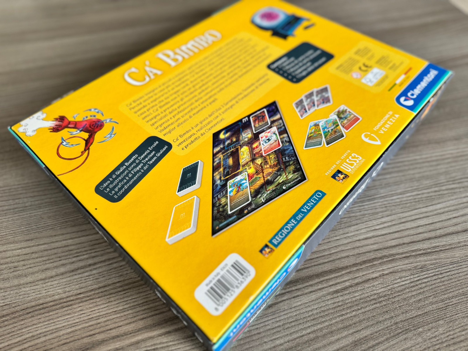 Il gioco, pensato per bambini dai primi giorni di vita fino ai 5 anni, unisce educazione e intrattenimento: una scatola, un tabellone raffigurante un ideale palazzo veneziano, 112 carte illustrative e un Vademecum con le regole auree della prevenzione domestica. Le illustrazioni fiabesche e la grafica sono state curate dai giovani creativi Denis Ercole e Filippo Trevisan, mentre i contenuti scientifici sono stati validati da un comitato composto da pediatri, rianimatori, medici dell’emergenza urgenza, ostetriche, neuropsichiatri infantili, igienisti e formatori, garantendo l’accuratezza e l’efficacia educativa dello strumento.