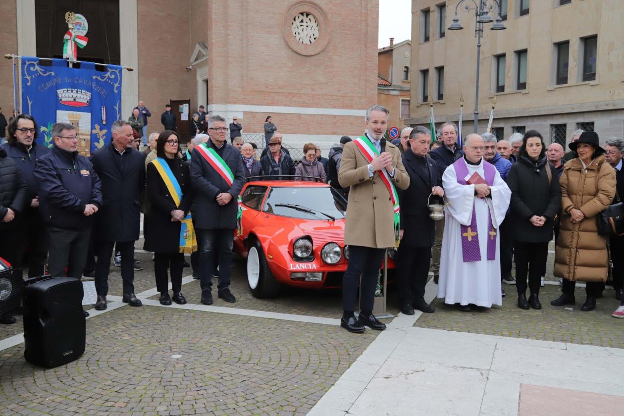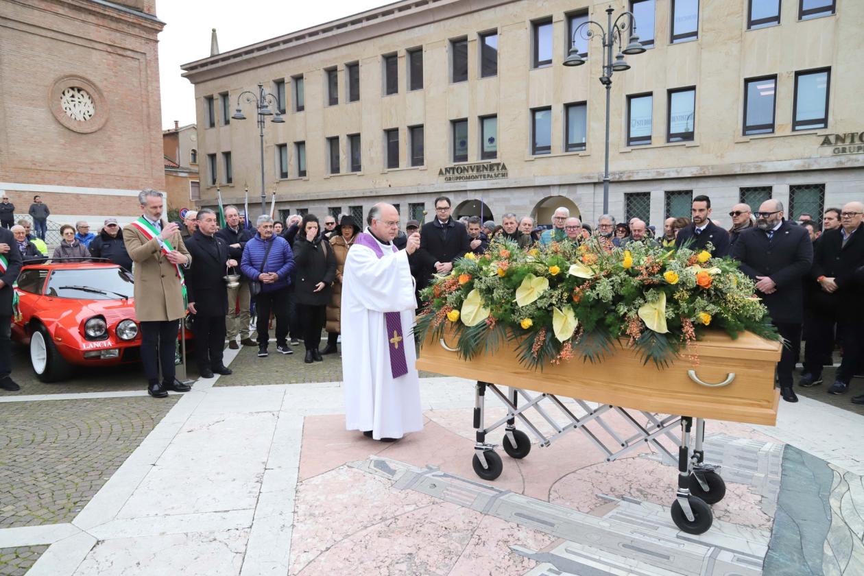 CAVARZERE - Il rombo assordante della “sua” Lancia Stratos ha riempito piazza Duomo per l’addio della città al “Drago”. Mercoledì la cerimonia commemorativa per Sandro Munari, storico campione di rally scomparso lo scorso sabato all’età di 85 anni. Bandiere a mezz’asta e lutto cittadino di due giorni in ricordo del pilota.