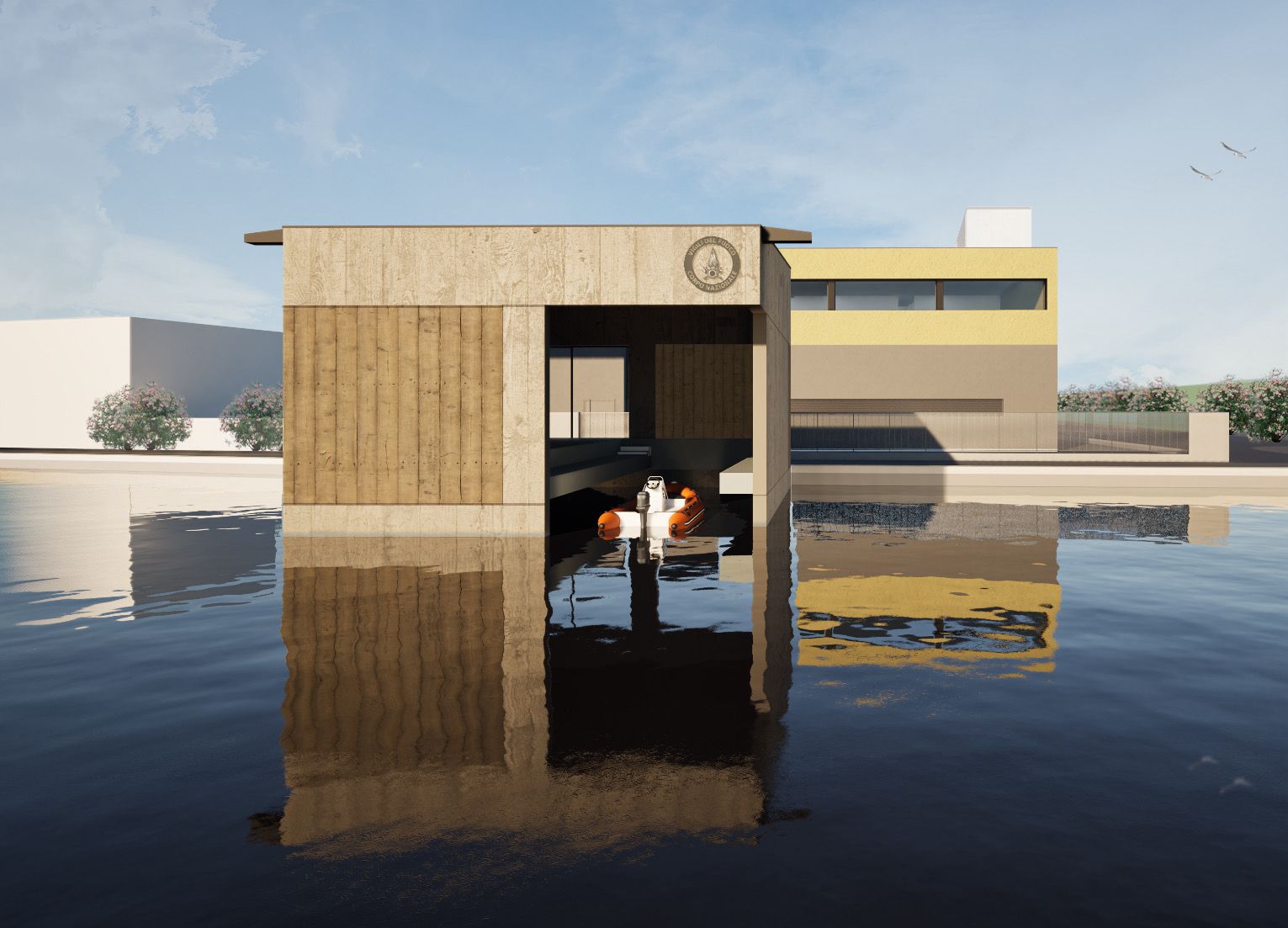 Il nuovo distaccamento dei pompieri sorgerà recuperando l’edificio dell’ex centro minori, oggi inutilizzato, ampliandone gli spazi grazie a una nuova costruzione che raccoglierà la maggior parte delle funzioni operativo-residenziali del corpo. Saranno previsti anche spazi accessori tipici di un distaccamento lagunare, come il castello di manovra per l’addestramento del personale operativo e la cavana per il ricovero delle imbarcazioni di soccorso.