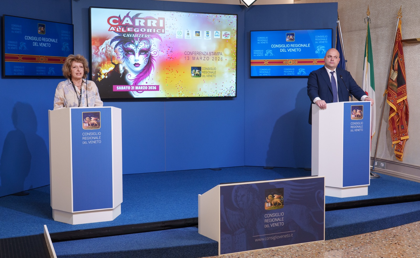 VENEZIA - È stata presentata venerdì, nella sala stampa ‘Oriana Fallaci’ di palazzo Ferro Fini a Venezia la 64ª edizione della sfilata dei carri Allegorici di Cavarzere, in programma sabato 21 marzo, alle 20:30, un evento che da decenni rappresenta uno dei momenti culturali e folkloristici più attesi del territorio. L’incontro ha visto la partecipazione del vice capogruppo di Fratelli d’Italia Matteo Baldan, insieme alla presidente della Pro Loco Lina Figoni, al sindaco Pierfrancesco Munari e all’assessore comunale Mattia Bernello. Figoni ha descritto la manifestazione come il “fiore all’occhiello” del paese, capace di richiamare un gran numero di visitatori e di coinvolgere attività associative e produttive locali.