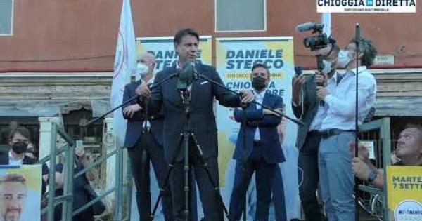 CHIOGGIA - Il comizio a Chioggia di Giuseppe Conte, giunto ieri a Chioggia, in appoggio a Daniele Stecco. "Se volete un paese pulito, fuori dalle mafie, votate 5 Stelle".