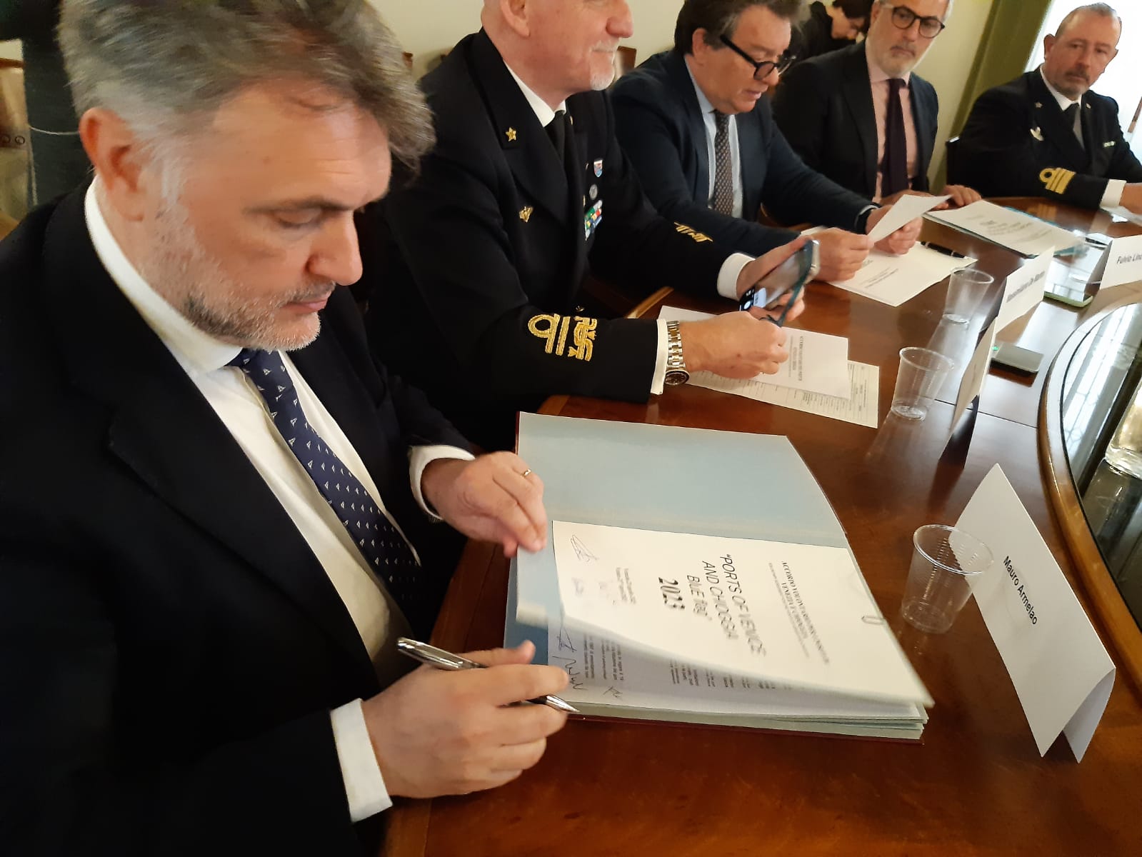VENEZIA - Questa mattina a Ca' Farsetti si è tenuta la sottoscrizione dell'Accordo Venice Blue Flag 2023, finalizzato a ridurre l'impatto di emissioni in atmosfera da parte delle navi da crociera che arrivano ed ormeggiano nei Porti della Laguna di Venezia e di Chioggia. Sono intervenuti, tra gli altri, l'assessore comunale all'Ambiente, Massimiliano De Martin, il sindaco di Chioggia, Mauro Armelao, l'assessore all'Ambiente del Comune di Chioggia, Serena De Perini, il comandante della Capitaneria di Porto di Venezia, Piero Pellizzari, il comandante della Capitaneria di Porto di Chioggia, Dario Riccobene, il presidente dell'Autorità di Sistema portuale del Mare Adriatico settentrionale - Porti di Venezia e Chioggia, Fulvio Lino Di Blasio, il presidente di Venezia Terminal Passeggeri, Fabrizio Spagna, gli agenti delle compagnie crocieristiche.