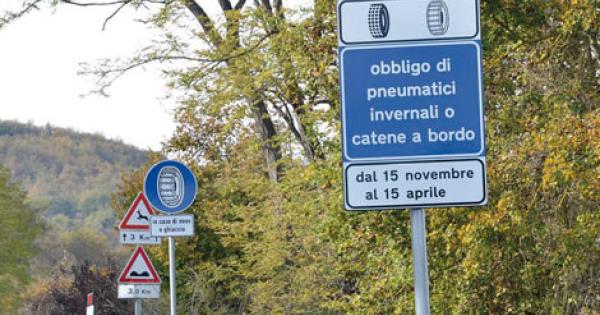 L’obbligo di catene o pneumatici invernali viene segnalato tramite apposita segnaletica verticale e si estende anche al di fuori del periodo stabilito, qualora si verifichino precipitazioni nevose, formazioni di ghiaccio o pioggia ghiacciata.